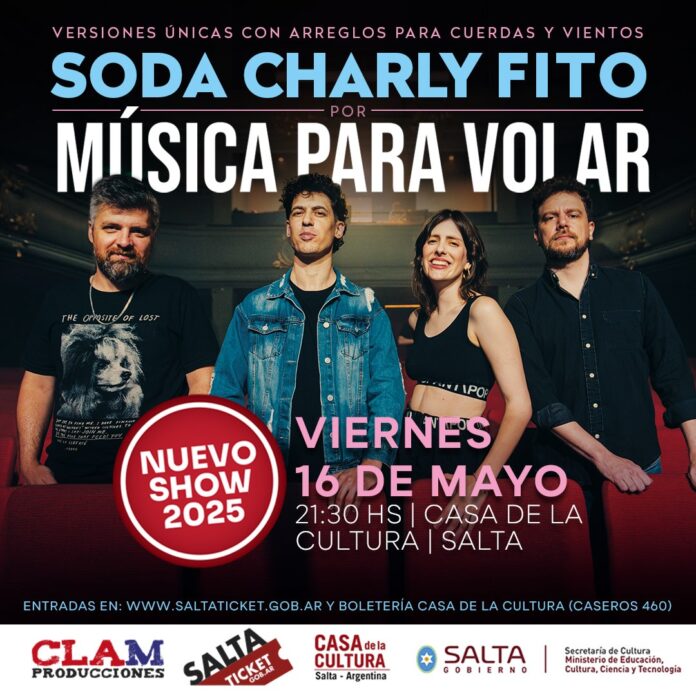 Una noche mágica, un viaje por el alma del rock nacional. El próximo viernes 16 de mayo a las 21:30 hs, Música Para Volar vuelve a pisar fuerte en Casa de la Cultura (Caseros 460) con una propuesta renovada que promete emocionar y sorprender.