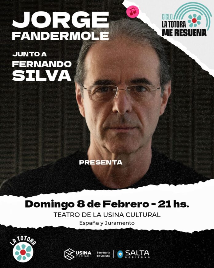 Jorge Fandermole llega a Salta para presentar “Tiempo y lugar” el domingo 8 de febrero a las 21 hs en el Teatro La Usina Cultural (España y Juramento), junto al músico Fernando Silva, en el marco del ciclo “La Totora Me Resuena – Verano 2026”.