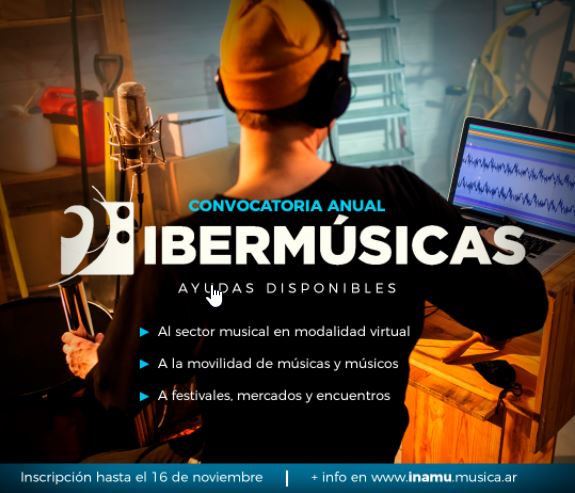Convocatoria destinada a apoyar la movilidad y la circulación de artistas dentro de la región iberoamericana para participar en festivales, mercados, foros, ferias, conciertos, salas, etc entre el 1 de junio y el 31 de diciembre de 2021. Pueden participar músicas y músicos solistas, ensambles, grupos, bandas, coros o cualquier otro tipo de formación de cualquier estilo musical. Se brindará apoyo para la compra de pasajes aéreos y terrestres por un monto máximo de 7.500 USD (siete mil quinientos dólares).