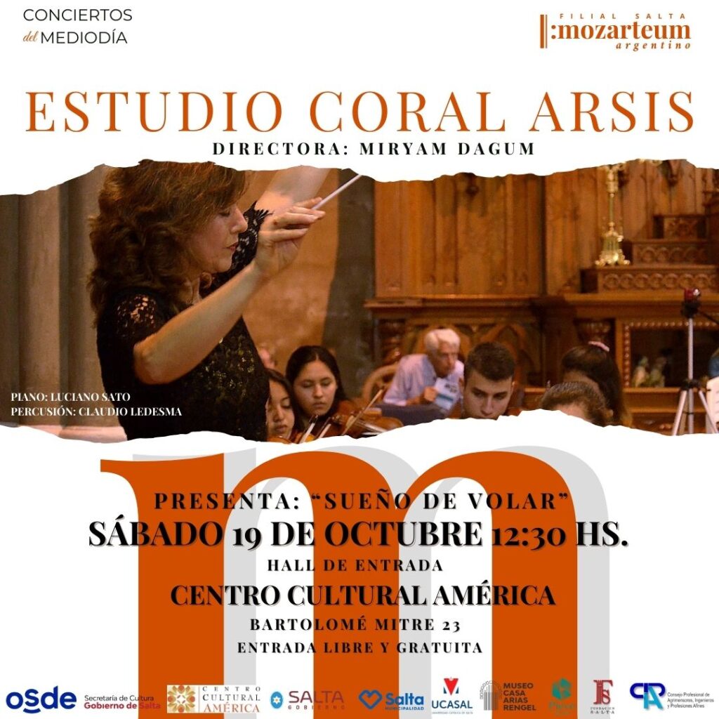 En el marco del ciclo “Conciertos de Mediodía” que organiza el Mozarteum Argentino Filial Salta, Arsis brindará un concierto para toda la familia, con repertorio de los grandes clásicos de la música y la presentación especial de tres obras del consagrado compositor contemporáneo Christopher Tin, una de las cuales le da nombre a este concierto: “Sueño de volar” cuya letra está inspirada en versos de Leonardo da Vinci.