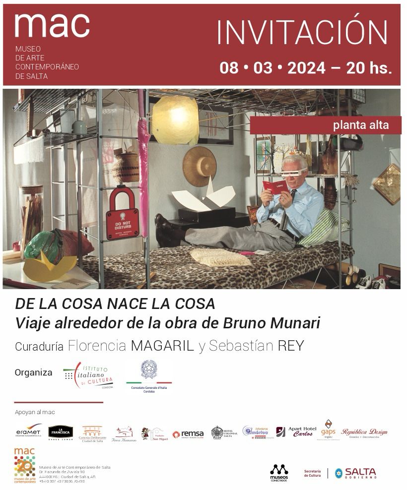 “De la cosa nace la cosa – Viaje alrededor de la obra de Bruno Munari” es la primer muestra sobre el trabajo del artista y diseñador italiano en nuestro país y una de las primeras en América Latina; tiene como objetivo principal dar a conocer parte de su inmensa obra y contagiar su espíritu lúdico y creador. Organizada por el Instituto Italiano de Cultura de Córdoba, la exposición está co curada por Florencia Magaril y Sebastian Rey y cuenta con el apoyo de Editorial Corraini y Niño Ediciones.