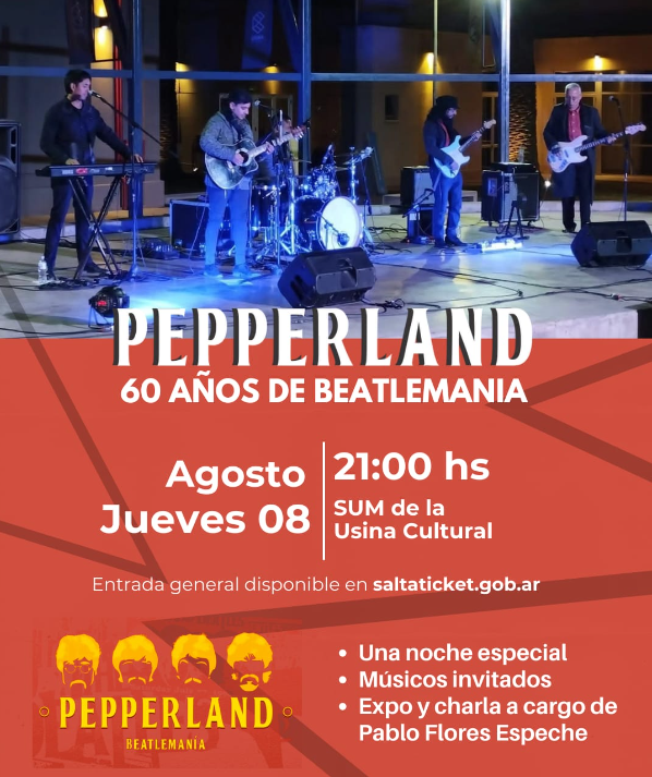 Pepperland transita los escenarios de Salta y Jujuy desde 2022, siendo un proyecto que surgió un año antes; se caracteriza por el trabajo en las voces y armonías que hicieron famosos a John, Paul y George, con el acompañamiento de la batería del gran Ringo. La banda local está integrada por Arnaldo López (voz y batería), Patricio Falcón (voz y guitarra), Francisco “Rulo” Rivero (guitarra), Pablo “Keypablo” Sardina (teclado y coros), y Juan “el Loro” Jiménez (bajo y coros). Se sumarán invitados especiales tocando cellos, violines, viola, saxo, trompeta, trombón, y cantando.