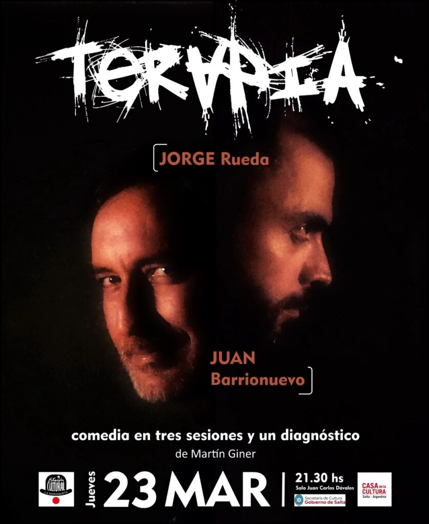 La obra se presenta el próximo jueves 23 de marzo a las 21:30 horas en la sala Juan Carlos Dávalos de la Casa de la Cultura (Caseros 460). Las entradas se compran en la Casa de la Cultura. Terapia, por su naturaleza, es una función no apta para personas menores de 12 años.