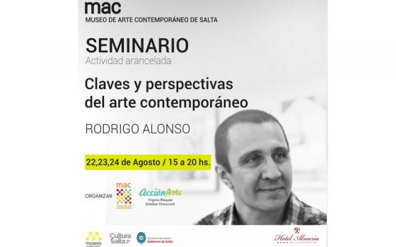 El museo de arte contemporáneo en conjunto con acciónArte (Virginia Blaquier + Esteban Drincovich) organizan el seminario “Claves y Perspectivas del Arte Contemporaneo” que dictará Rodrigo Alonso, licenciado en artes especializado en arte contemporáneo y nuevos medios.