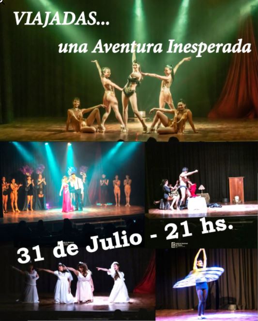 El sábado 31 de Julio, a partir de 21hs, tendrá lugar la obra «Viajadas, una Aventura Inesperada», en Salón Auditorium (Avda Belgrano 1349).